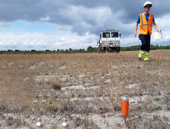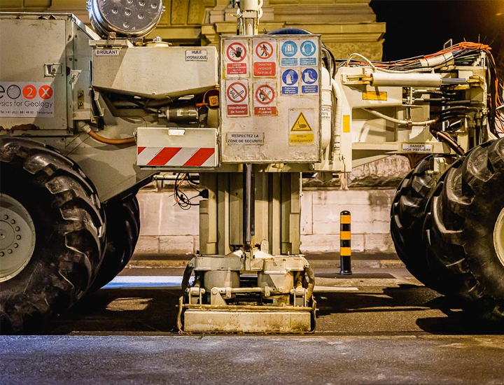 We use the compact and lightweight STRYDE nodal system, the smallest in the geophysics market. With wireless charging and data harvesting, the STRYDE node can continuously record for days. Apart from superior data quality, it surpasses competitors with operational advantages: requires 4 to 5 times fewer vehicles and personnel for transportation, can be transported and deployed with light vehicles, no receiver line cutting, minimal environmental impact, and a small footprint for discreet deployment. Our expertise enables simultaneous operation of multiple vibrators in a given area, minimizing acquisition time while ensuring maximum data quality.